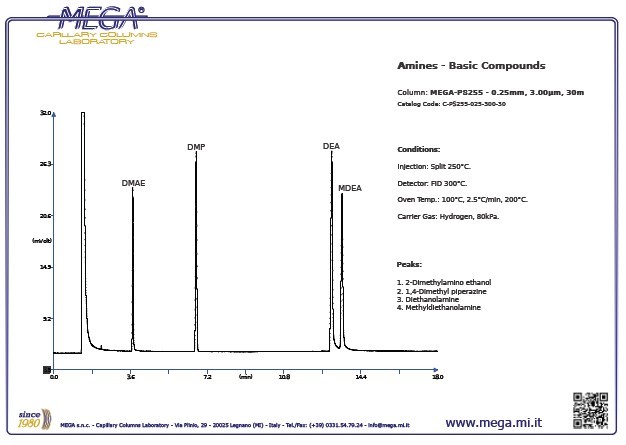 甲基二乙醇胺(MDEA)的氣相色譜分析柱-MEGA-PS255 請(qǐng)下載:胺類(lèi)堿性化合物的分析.pdf