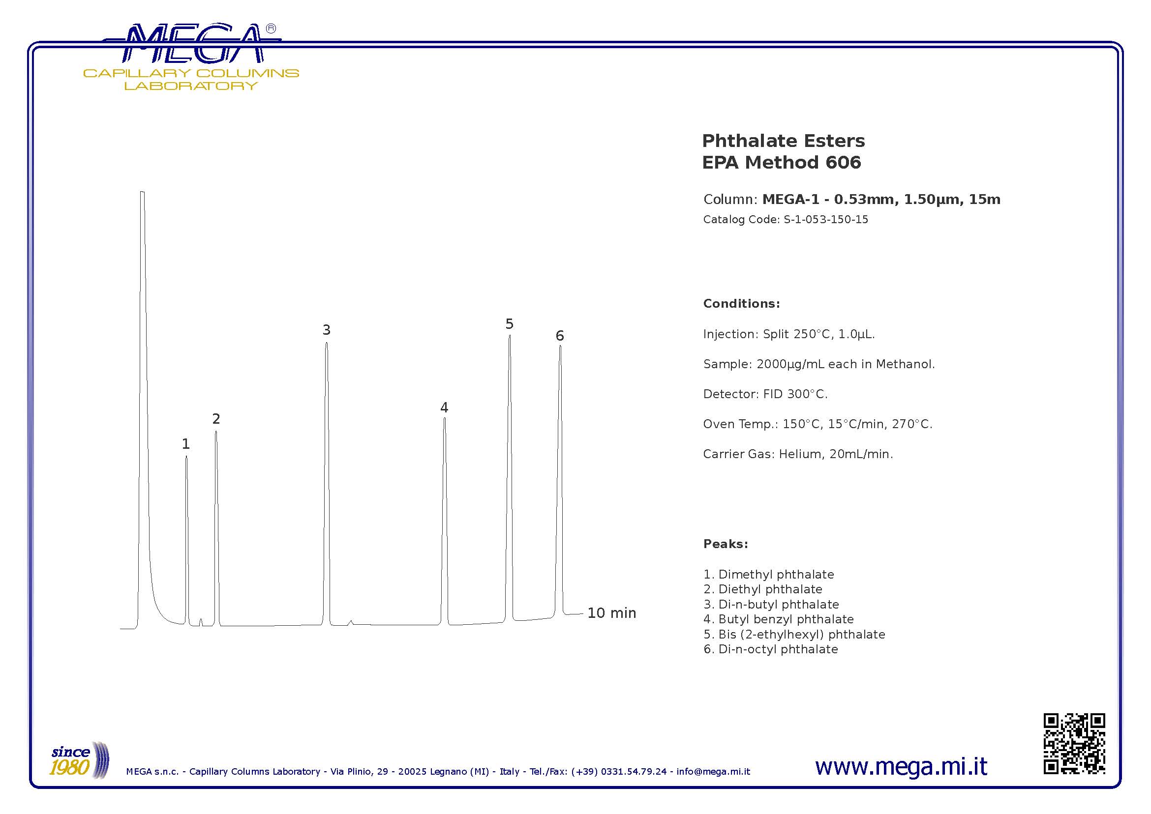 色譜柱:MEGA-1  15m x 0.53mm 1.5um