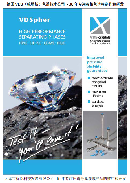 德國VDS optilab(威尼斯)色譜技術(shù)有限公司成立于1986年,專注于液相色譜柱的制作和研發(fā)。從開始OEM提供著名品牌填料液相色譜柱,到擁有性能超群、產(chǎn)品全面的自主品牌VDSpher,經(jīng)歷了30年悠久歷史和日益完善的技術(shù)水平。尤其在提供飯相分離液相色譜柱方面,不僅具有高性能、高柱效、長壽命和良好的批次穩(wěn)定性,而且提供全面、豐富和多樣性的產(chǎn)品選擇。VDSpher(經(jīng)典)、VDSpher PUR(精睿)、U-VDSpher PUR(超高壓)、Optigel CarbEx(有機(jī)酸、糖類分離)等等,充實(shí)的產(chǎn)品為藥品和食品的液相色譜分析、質(zhì)量控制和研發(fā)提供廣泛的選擇。